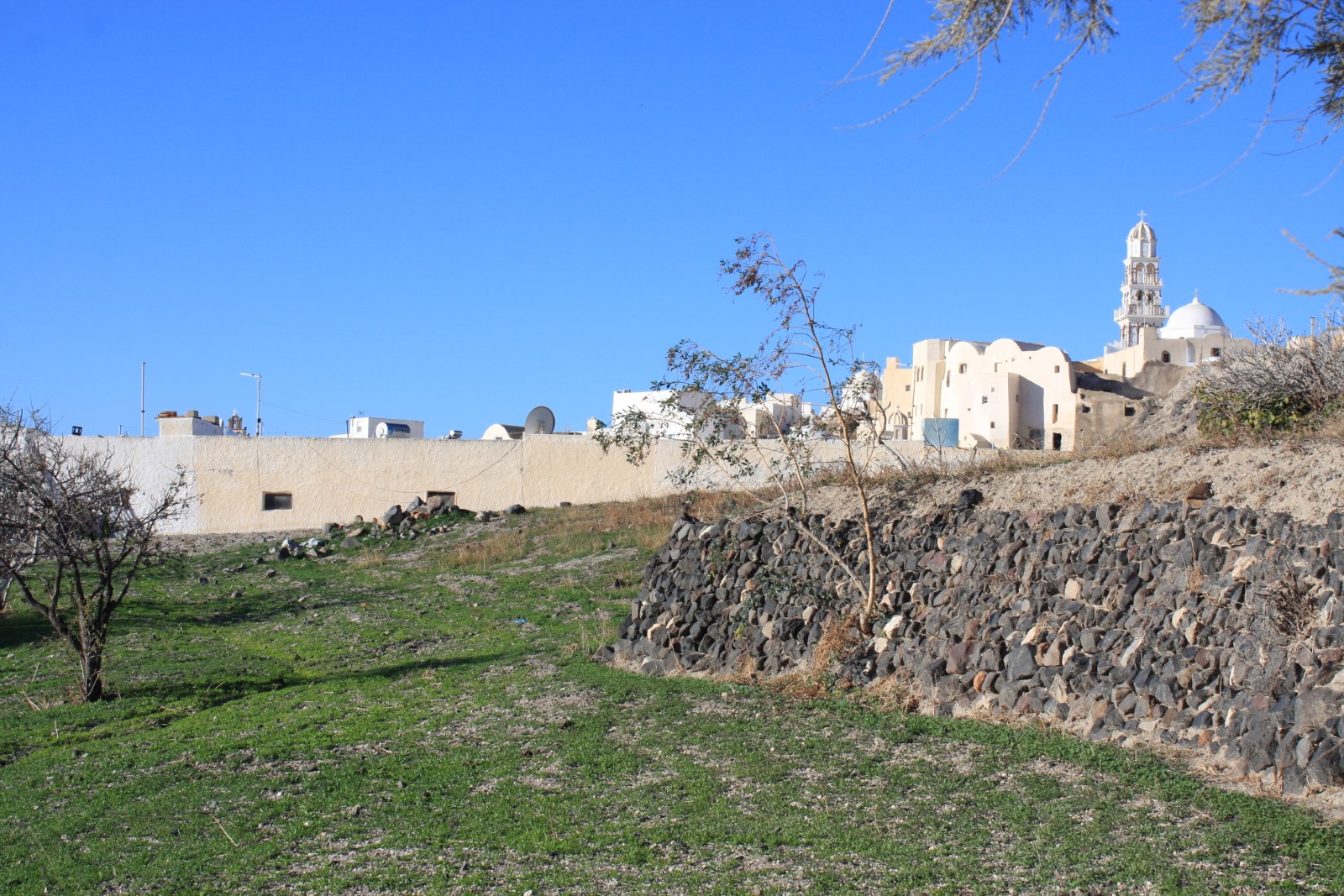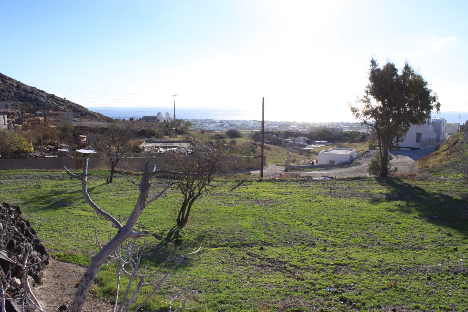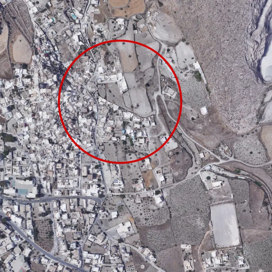 The gently sloping terrain of this real estate in Santorini provides ample space to construct a luxury villa or compound, taking full advantage of the unobstructed vistas stretching out in every direction. Imagine waking up each morning to the sight of this old traditional town, or entertaining guests as they admire the iconic blue-domed churches and the vibrant colors of the sunset over the sea.